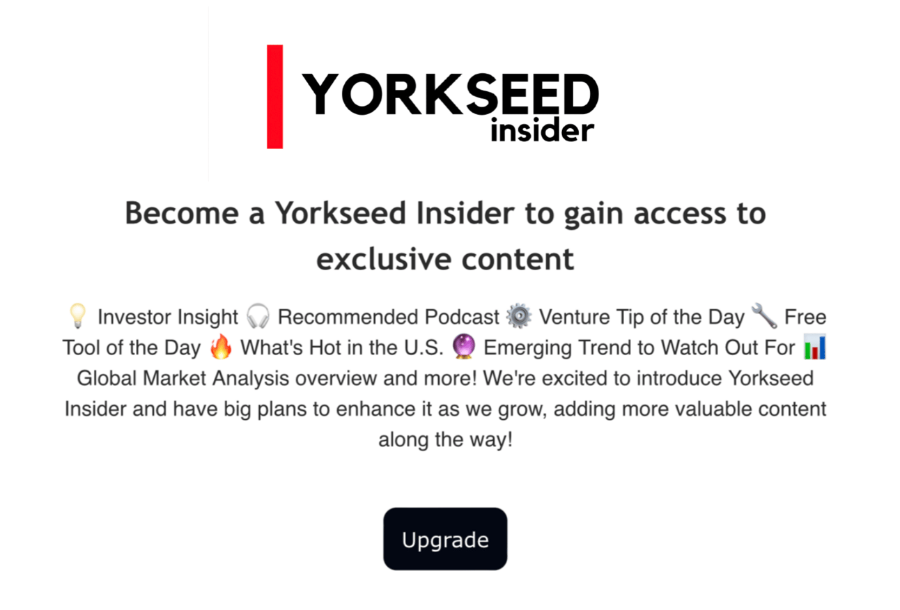 Starting April 1st, 2025, we’re introducing the Yorkseed Insider premium subscription! Twice a week, you'll receive 🚀 exclusive content, including Founder and Investor Spotlights, a Global Market Overview, early access to special opportunities, and more!